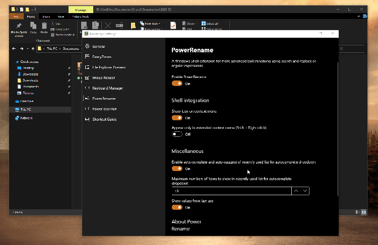 Power Rename : Une extension Windows Shell pour le renommage en bloc avancé utilisant la recherche et le remplacement ou des expressions régulières.