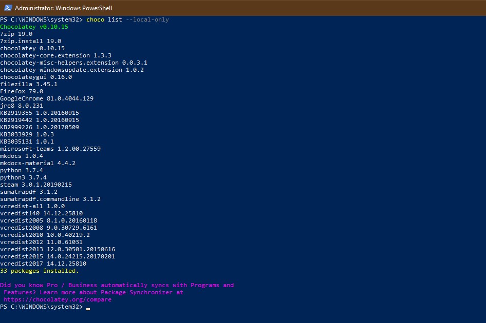 choco list --local-only