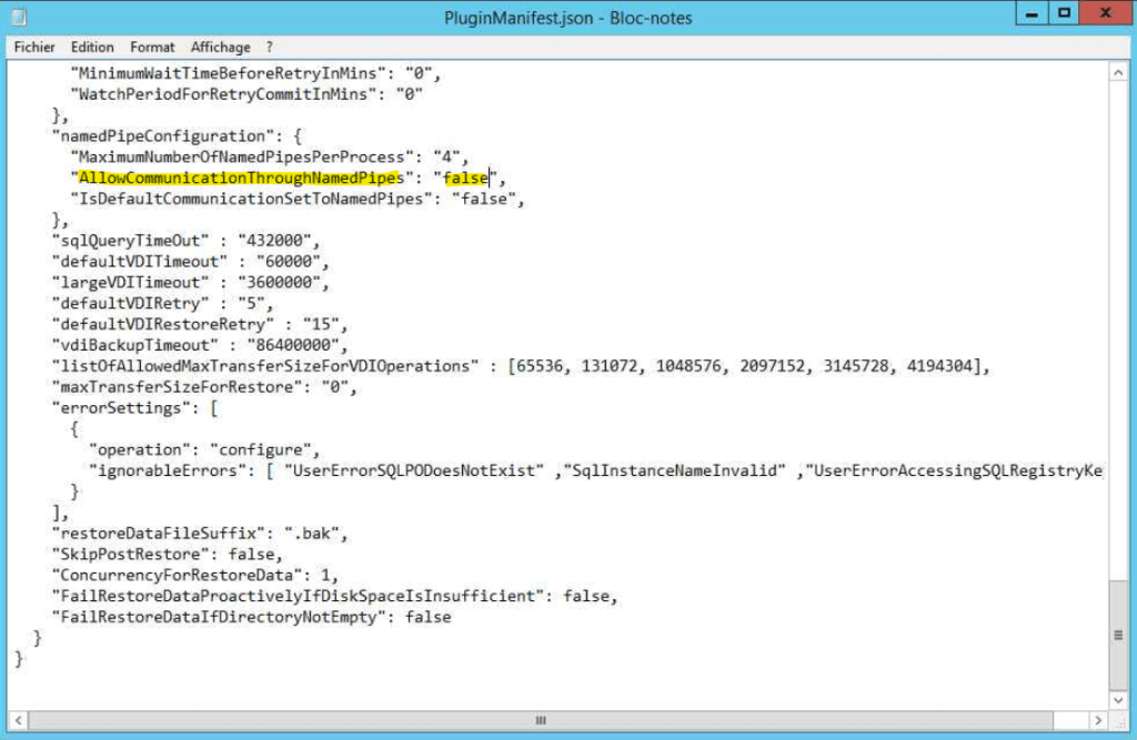 Et bien il faut modifier la valeur du paramètre AllowCommunicationThroughNamedPipes pour passer de true à false