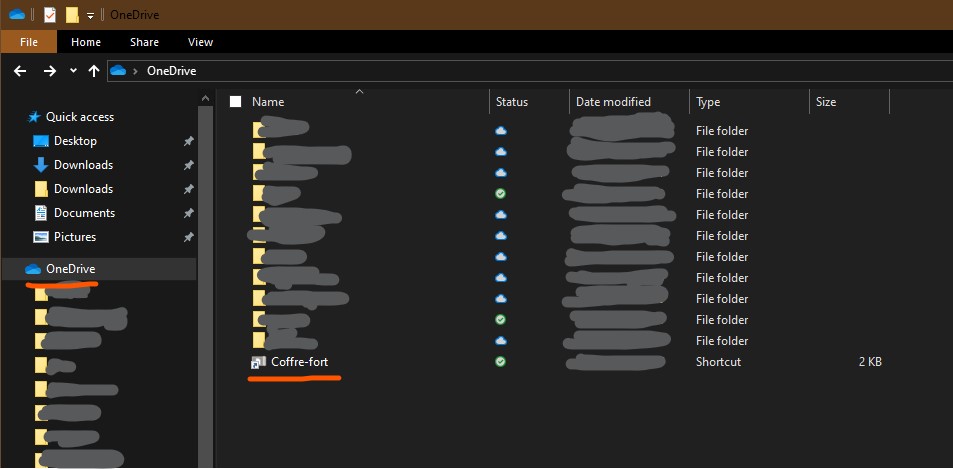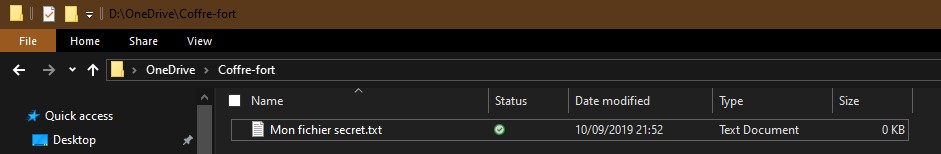 Vous trouverez votre coffre-fort à la racine du dossier OneDrive. Ce coffre-fort est en fait un espace protégé par BitLocker, la technologie de cryptage de Microsoft.