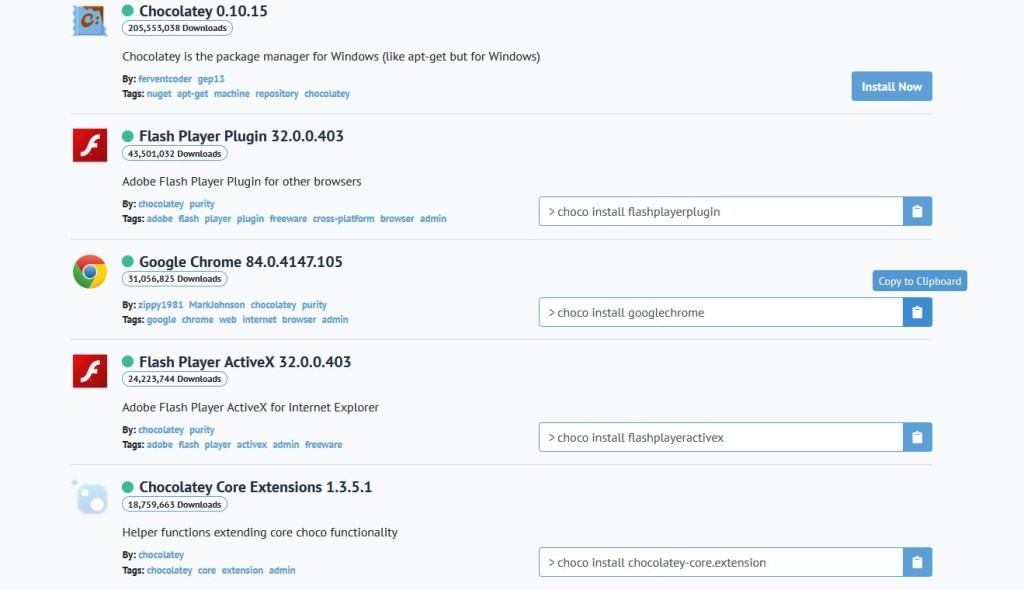 Et pour chercher les packages disponibles : https://chocolatey.org/packages