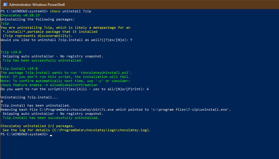 choco uninstall 7zip