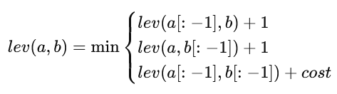 $prevRow[$j - 1]et en ajoutant$cost, qui est 0 si les caractères actuels sont identiques, sinon 1.
